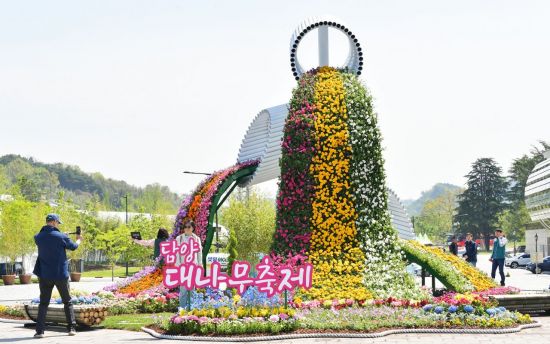 5월 2~6일 황금연휴를 맞아 '제24회 담양대나무축제'가 죽녹원 일원에서 '담양 초록에 물들다-대나무의 향연 with Daenamoo'를 주제로 열린다. 담양군은 다채로운 콘텐츠를 갖추고, 관광객의 발길을 사로잡을 준비를 마쳤다. 사진은 꽃탑 광장에서 관광객들이 인증샷을 하는 모습. 담양군 제공 |