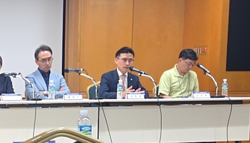 25일 은행법학회 '법과정책포럼'에서 김미섭 미래에셋증권 부회장이 발언하고 있다. /심준보 기자 |