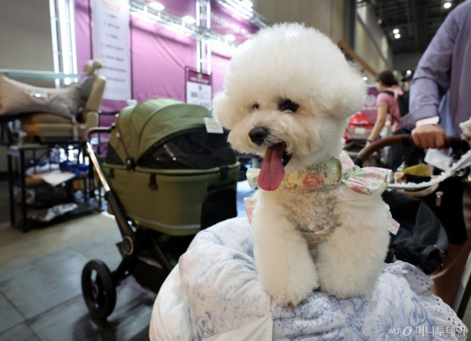 (고양=뉴스1) 김진환 기자 = 19일 오전 경기 일산 킨텍스 제1전시장에서 열린 2024 메가주 일산에서 관람객과 함께 온 반려견이 신상 유모차에 앉아 있다. 2024.5.19/뉴스1 Copyright (C) 뉴스1. All rights reserved. 무단 전재 및 재배포, AI학습 이용 금지. /사진=(고양=뉴스1) 김진환 기자 |