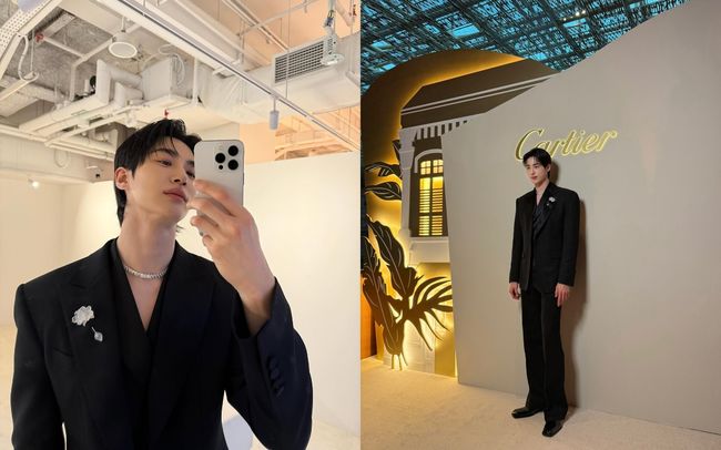공개된 사진은 블랙 수트를 입고 다양한 포즈를 취하고 있는 모습. 애버서더로 활동 중인 명품 브랜드 행사장에 참여한 것으로 보이는 변우석은 작은 얼굴과 큰 키, 그리고 독보적인 비율을 자랑하고 있다.