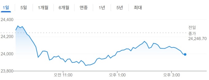 [그래픽=구글 캡처] 인도 증시 니프티50 지수 25일 추이 |