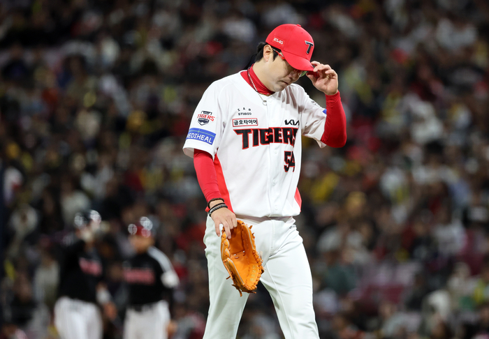 여기서 KIA 벤치가 움직였다. 정재훈 투수코치가 새 공을 받아 들고 올라왔다. 교체다. 전상현을 투입했다. 양현종은 고개를 숙인 채로 더그아웃으로 내려왔다.