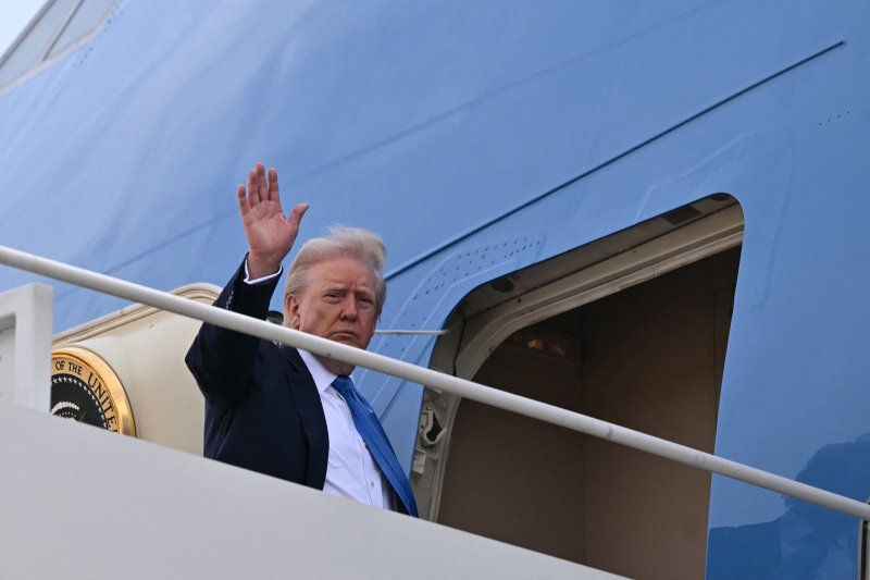 도널드 트럼프 미국 대통령이 프란치스코 교황 장례미사 참석을 위해 25일(현지시간) 메릴랜드주 앤드루스 합동기지에서 에어포스 원에 올라타며 손을 흔들고 있다. AFP 연합 |