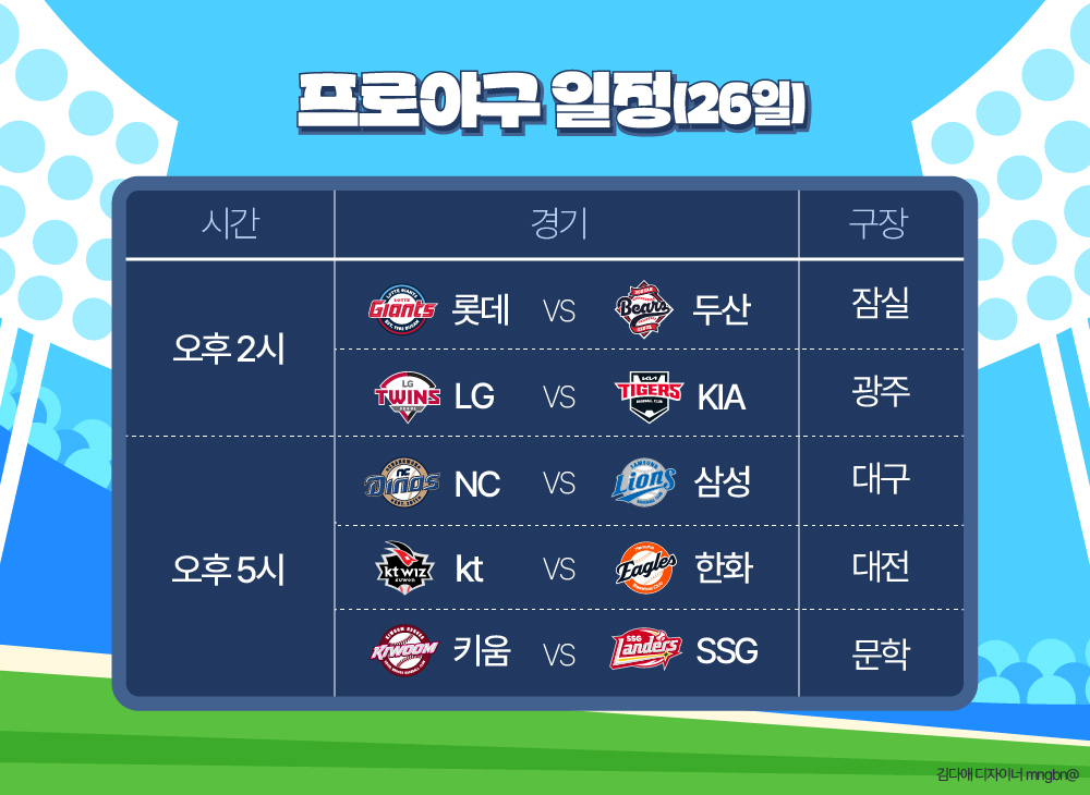 - 롯데 vs 두산 (잠실·14시)- LG vs KIA (광주·14시)