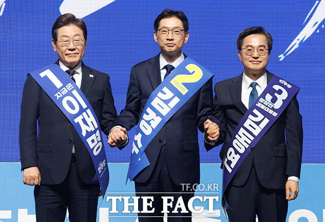 '하나의 민주당'을 강조하기도 했다. 김동연 후보는 "우리 민주당 내부의 민주주의부터 다시 더 크게, 더 깊게 만들어가자고 호소드린다"며 "오늘 이 순간부터 친명이니 비명이니 수박이니 하는 분열과 배제의 언어와 결별하자"고 당부했다. 그러면서 "민주당의 이재명, 민주당의 김경수, 민주당의 김동연"이라며 "모든 당원의 민주당, 모든 국민의 민주당이 돼야 한다"라고 전했다.
