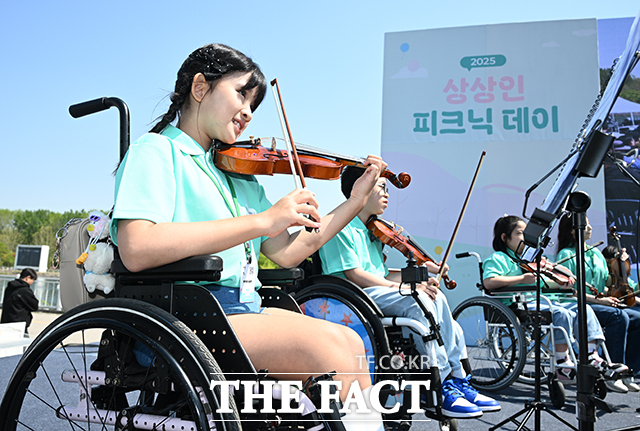 [더팩트|하남=박헌우 기자] 상상인 그룹 '2025 피크닉데이'가 26일 오전 경기 하남시 미사경정공원에서 열린 가운데 '상상휠(Wheel)하모니 오케스트라' 단원들이 멋진 연주를 펼치고 있다.