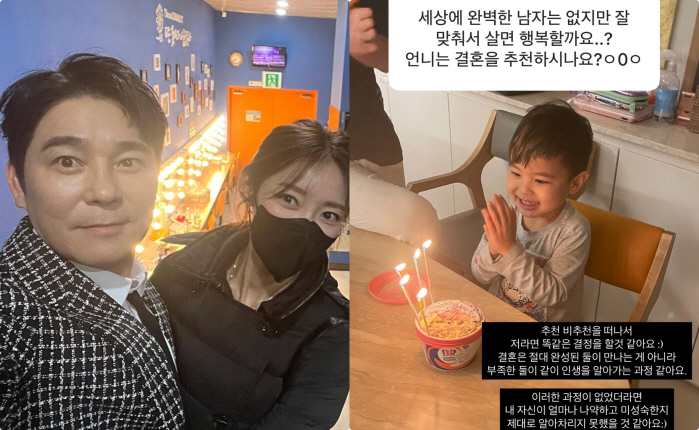마지막으로 서하얀은 "세상에 완벽한 남자는 없지만 잘 맞춰서 살면 행복하냐. 언니는 결혼 추천하냐"는 물음에는 "추천 비추천을 떠나서 저라면 똑같은 결정을 할 것 같다. 결혼은 완성된 둘이 만나는 게 아니라 부족한 둘이 같이 인생을 알가는 과정 같다"면서 "이러한 과정이 없었더라면 내 자신이 얼마나 나약하고 미성숙한지 제대로 알아차리지 못했을 것 같다"라고 대답해 시선을 끌었다.