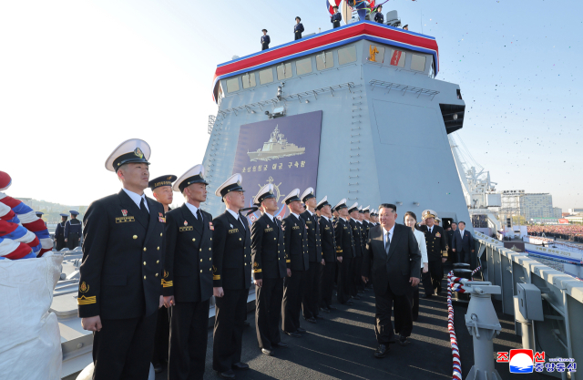 북한 관영매체인 조선중앙통신은 26일 김 위원장은 전날 남포조선소에서 열린 신형 구축함 진수식에 참석해 구축함과 순양함, 호위함 등으로 구성되는 원양 함대 창설 계획을 밝히고 “함선들을 연안방어수역과 중간계선해역에서 평시작전운용하게 될 것이라 말했다”고 보도했다.