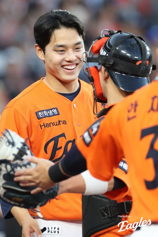 이렇게 변화구 완성도가 높아진 이유에 대해 문동주는 “비결은 없고, 열심히 잘 준비했다. 포수 최재훈 선배님 리드가 정말 크고, 전력분석을 해주시는 (윤)윤덕이 형이 매 경기마다 포인트를 잘 짚어주신다. 거기다 던지기만 하면 되겠다는 생각이 드니 불안함보다 확신이 선다”며 뒤에서 도와준 윤윤덕 전력분석원에게 특별히 고마움을 전했다.