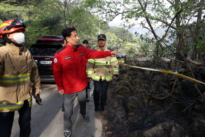 김 지사는 "오전 중 주불 진화를 목표로 긴장을 늦추지 말고 가용한 모든 인력과 장비를 총동원해 달라"며 "특히 순간 풍속이 매우 강한 만큼 헬기 운용 안전에 각별히 유의하고 진화 과정에서도 인명 피해가 발생하지 않도록 최선을 다해 달라"고 현장 진화대원들에게 거듭 당부했다.