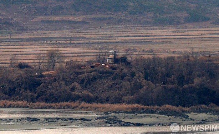 [파주=뉴스핌] 정일구 기자 = 9.19 남북군사합의를 전면 파기한 북한이 최전방 감시초소(GP)를 복원하기 시작한 가운데 29일 오후 경기 파주시 오두산 통일전망대에서 바라본 북한 황해북도 개풍군 일대가 고요한 모습을 보이고 있다. 2023.11.29 mironj19@newspim.com |