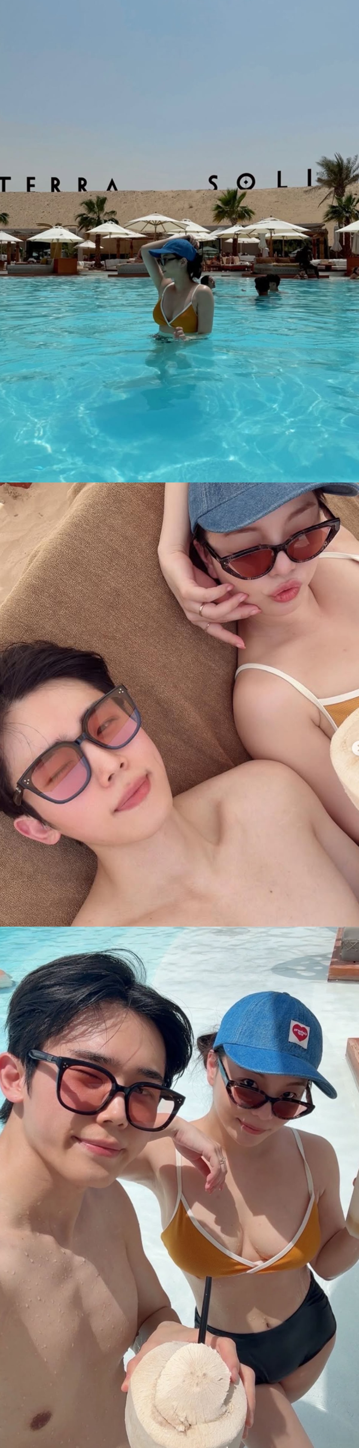 에일리는 26일 자신의 SNS에 “뜨거운 햇빛 아래에서 시원한 풀 데이(pool day) 행복하고 즐거운 신행”이라는 문구와 함께 여러 장의 사진을 게재했다.