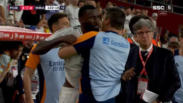 영국 매체 '메트로'는 해당 경기 종료 뒤 "레알 마드리드는 연장 후반 바르셀로나 쥘 쿤데에게 결승골을 허용하며 패색이 짙어졌고, 벤치 분위기가 과열되기 시작했다. 뤼디거는 터치라인에서 심판을 향해 물병을 던졌고, 주심 리카르도 데 부르고스 벵고에체아는 지체 없이 레드카드를 꺼냈다"고 전했다.