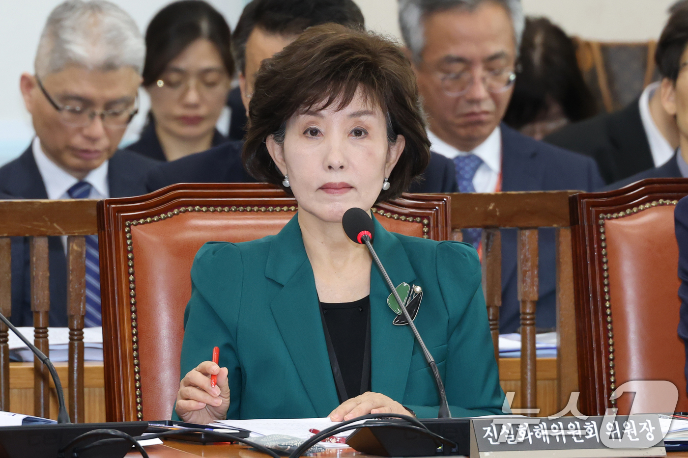 박선영 진실화해를위한과거사정리위원회 위원장이 24일 오전 서울 여의도 국회에서 열린 행정안전위원회 전체회의에 출석해 있다. 2025.4.24/뉴스1 ⓒ News1 이광호 기자 |