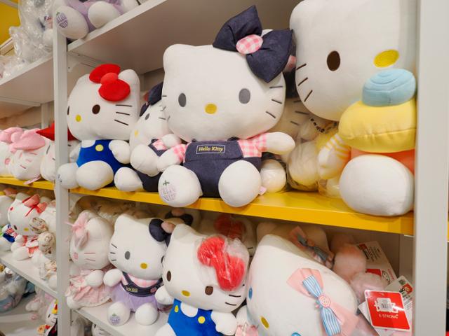 중국에서 생산된 헬로키티 봉제인형이 18일 미국 캘리포니아주 샌프란시스코의 한 가게에 진열돼 있다. 미국과 중국의 '관세 치킨게임'이 지속될 경우 미국 내 완구류 가격은 크게 오를 것으로 예상된다. 샌프란시스코=EPA 연합뉴스 |