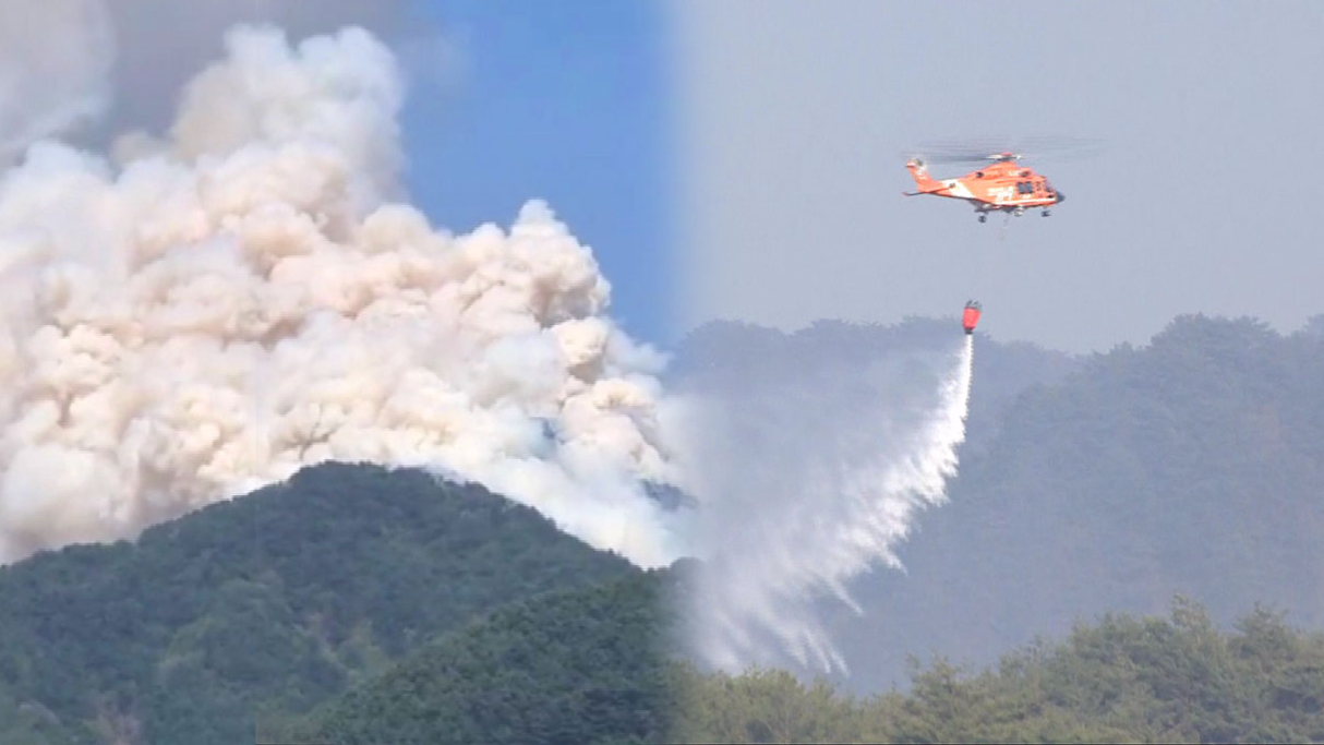 능선을 따라 자욱한 연기가 피어오릅니다.