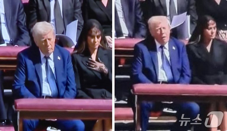 (서울=뉴스1) 김예슬 기자 = 도널드 트럼프 미국 대통령이 교황의 장례식에서 조는 듯한 모습이 포착되며 비판이 거세지고 있다. 트럼프 대통령은 이미 부적절한 복장으로 한 차례 입방아에 올랐다.