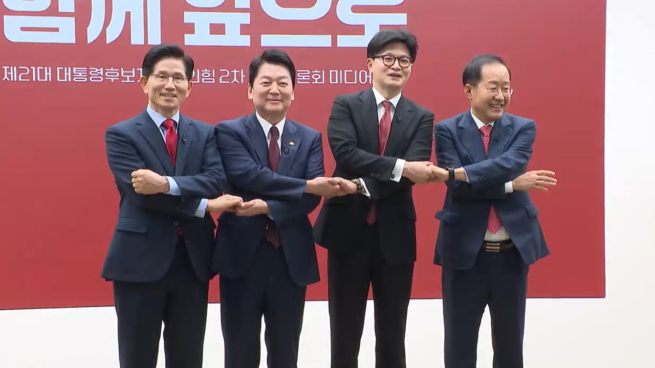 <김문수/국민의힘 대선 경선 후보> "이재명을 이기려는 모든 세력과 손을 잡고 힘을 모아 오는 6월 3일 대통령 선거에서 극적인 승리를 거두도록…"