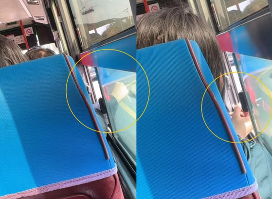 여성의 행동에 놀란 버스 운전기사는 다가와 “여기서 이러면 안 된다”고 제지했다.