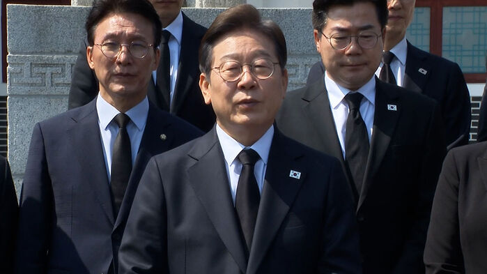 이재명 후보는 민주당 대선후보 선출 뒤 첫 공식 일정으로 전직 대통령 묘역에 참배하기 위해 서울 동작구 국립현충원을 찾았습니다.