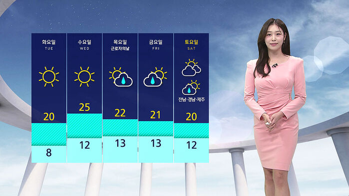 지역별 낮 기온 자세히 살펴보시면 서울의 기온 20도, 춘천 21도, 청주와 대전, 광주가 22도, 대구가 24도로 온화하겠습니다.