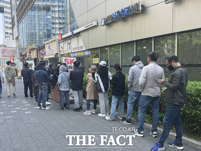 [더팩트|상암동=오승혁 기자] "(오전) 8시 40분부터 줄 서기 시작해서 10시 10분에 대리점 바로 앞이니까 지금 1시간 반 지났어요. 처음에 내 앞에 20명 정도 있었고 오늘 유심 150개 있다는데 지금 제 뒤에 서있는 사람들 중에 130명 정도만 받을 수 있는 거죠."