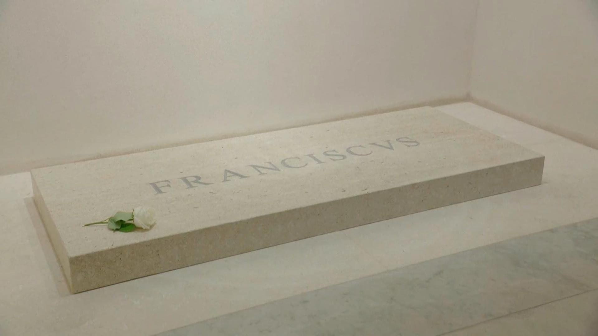 '프란치스쿠스'라는 라틴어 교황명만이 새겨진 무덤.