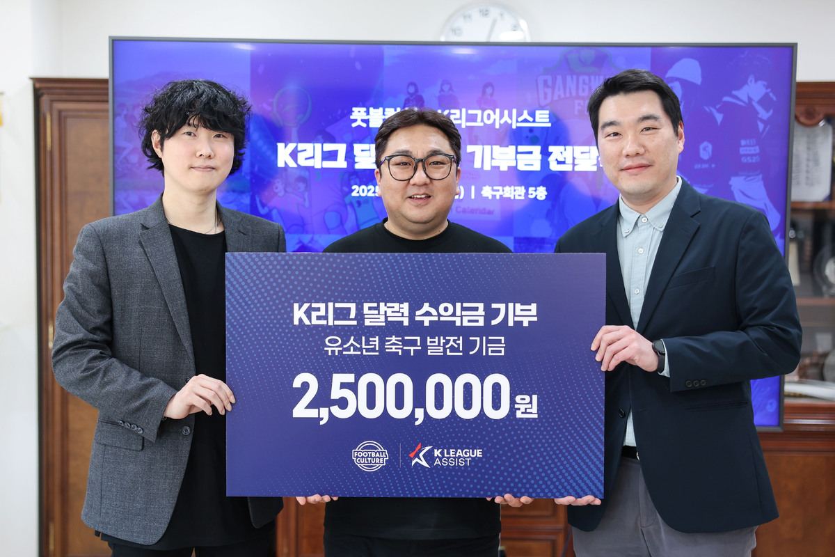 기부금 전달식은 지난 25일 축구회관에서 열렸다. K리그어시스트 이종권 사무국장, 풋볼컬쳐 서정호 대표, 달력 디자인을 맡은 BBKei(박백형) 작가가 참석했다.