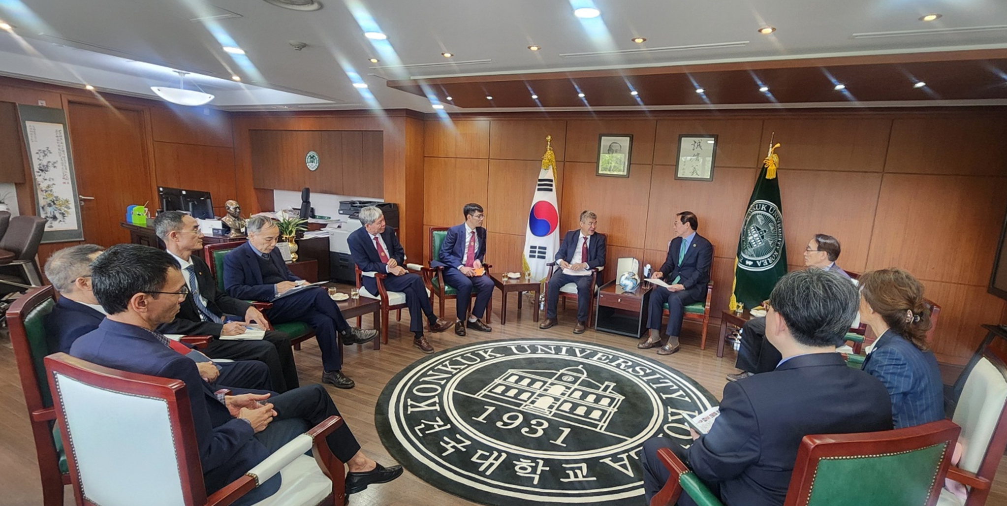 지난 4월 21에는 베트남국립농업대학교의 팜 반 끄엉(Pham Van Cuong) 부총장, 좌인(Bui Huy Doanh) 학장 등이 건국대 총장실을 방문해 건국대 원종필 총장과 함께 양 대학 간 현안 및 향후 협력 방안을 논의했다.
