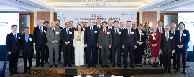 환경부는 28일 서울 중구 롯데호텔에서 '주한 외교공관 기후·환경 간담회'를 열었다고 밝혔다. 이번 간담회에는 이탈리아, 브라질 등 64개국의 주한 대사(대사 20명, 부대사 등 44명)를 비롯해 '유엔 아시아·태평양경제사회위원회(UNESCAP)' 동북아지역사무소 등 우리나라 주재 국제기구 관계자를 포함해 90여 명이 참석했다.
