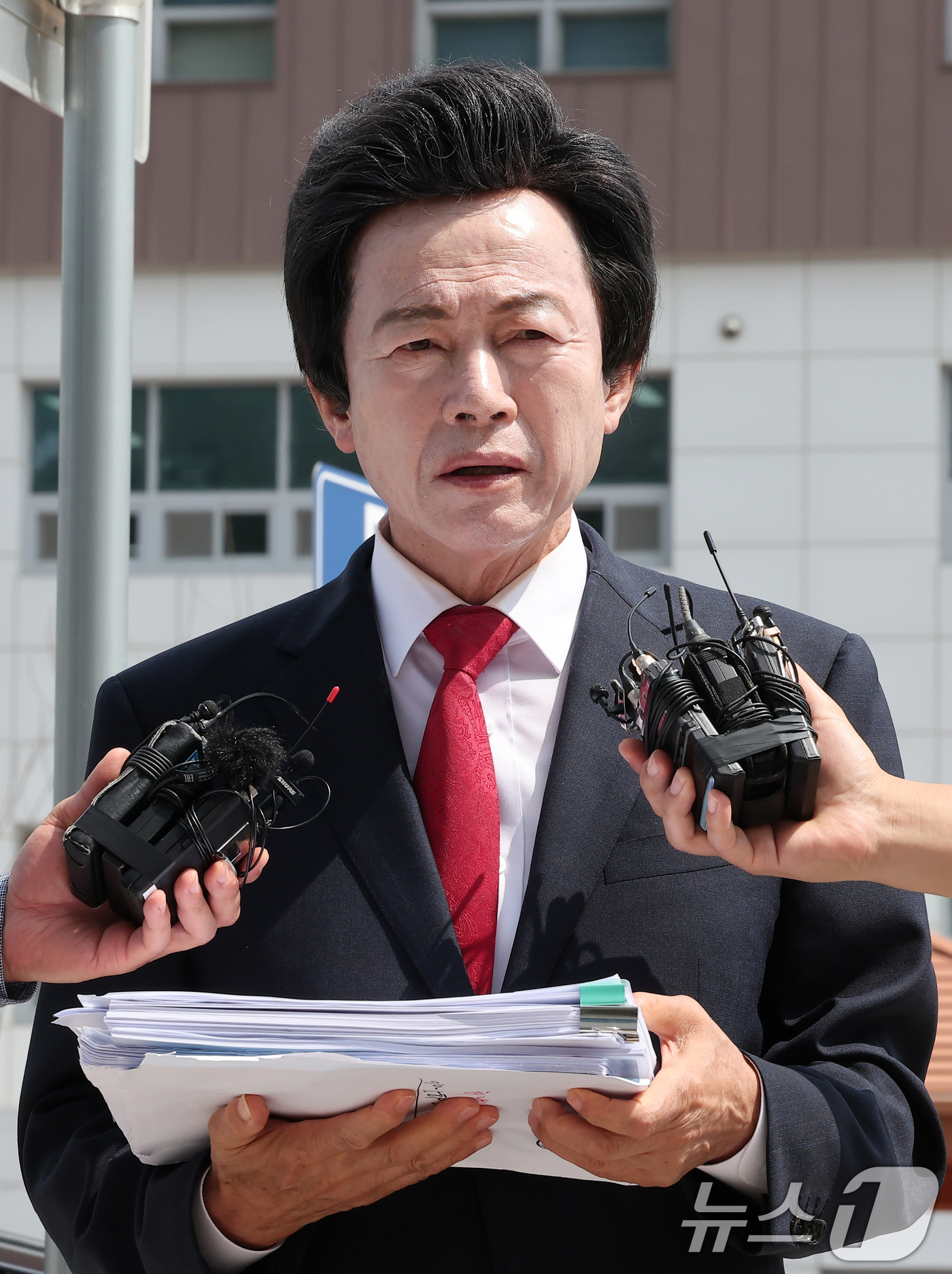 허경영 국가혁명당 명예대표가 경기 의정부 경기북부경찰청에서 열리는 '신도 성추행' 혐의와 관련 2차 조사에 출석하며 입장 발표를 하고 있다. 2024.7.19/뉴스1 ⓒ News1 김성진 기자 |