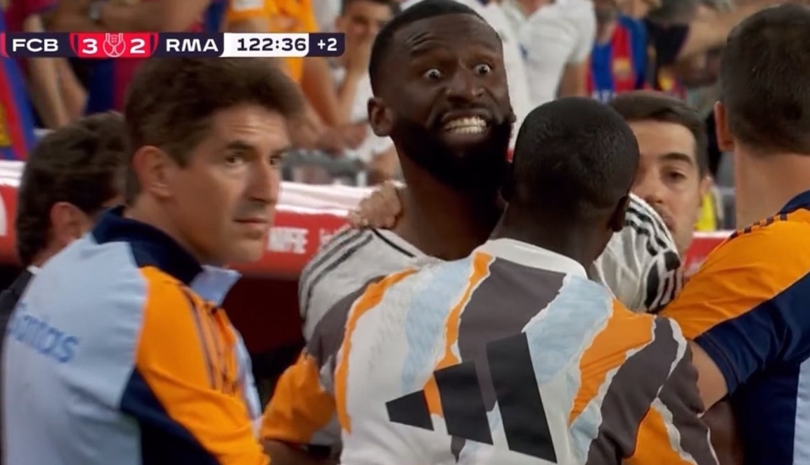 뤼디거는 지난 27일(한국시간) 스페인 세비야에 위치한 에스타디오 올림피코 데 세비야에서 열린 바르셀로나와의 2024-25시즌 코파 델 레이(스페인 국왕컵) 결승전에서 주심에게 얼음팩을 던져 퇴장당했다.