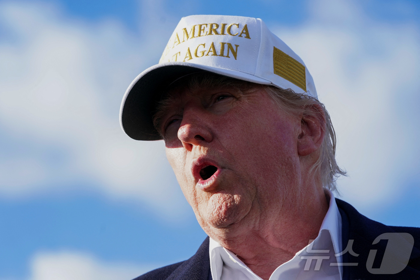 도널드 트럼프 미국 대통령이 27일(현지시간) 워싱턴으로 가기 위해 뉴저지주 모리스타운 공항에서 취재진을 만나 “볼로디미르 젤렌스키 우크라이나 대통령과 회동은 멋지고 아름다운 회의였다”고 말하고 있다. 2025.04.28 ⓒ 로이터=뉴스1 ⓒ News1 우동명 기자 |