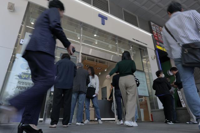 해킹 공격으로 가입자 유심 정보를 탈취당한 SK텔레콤이 유심 무상 교체에 나선 28일 서울 종로구 T월드 매장 앞에서 고객들이 온라인 예약을 안내받고 있다. 뉴스1 |