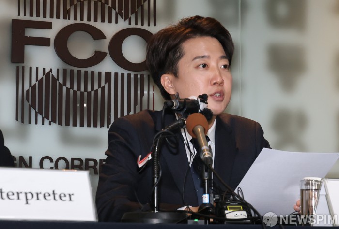 [서울=뉴스핌] 양윤모 기자 = 이준석 개혁신당 대선후보가 28일 오후 서울 중구 프레스센터 서울외신기자클럽에서 개최된 기자간담회에 참석해 발언을 하고 있다. 2025.04.28 yym58@newspim.com