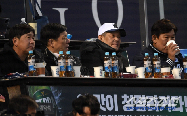 28일 잠실구장에서 열린 두산 베어스와 삼성 라이온즈의 경기. 류지현 감독, 허구연 총재, 박철순 전 선수, 조계현 기술위원장이 경기를 지켜보고 있다. 잠실=박재만 기자 pjm@sportschosun.com/2025.03.28/ |