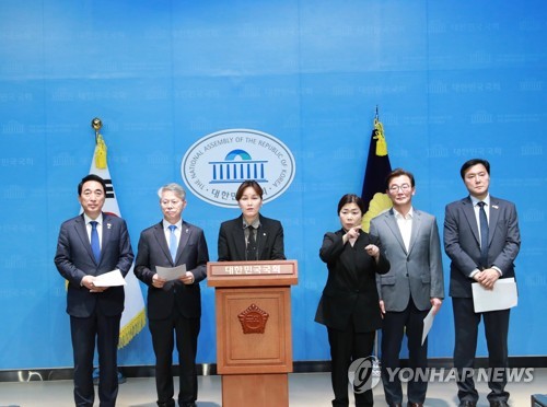 국회 문화체육관광위원회 소속 민주당 의원들은 이날 국회 소통관에서 기자회견을 열어 "권한도, 정당성도 없는 내란 잔재 세력이 측근 챙기기용 알박기 인사를 강행하는 노골적 행태를 보인다"며 이같이 요구했다.