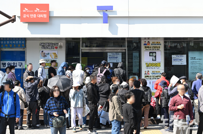 오늘 오전 서울 강남구의 한 SK텔레콤 대리점 앞에는 방문객 수십 명이 길게 줄을 섰습니다.
