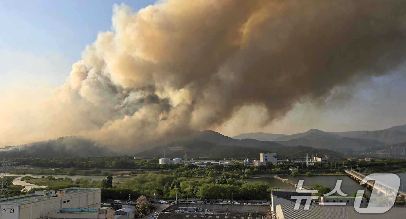28일 오후 2시 1분쯤 대구 북구 노곡동 함지산에서 불이 나 주변으로 확산하고 있다. ⓒ News1 공정식 기자 |