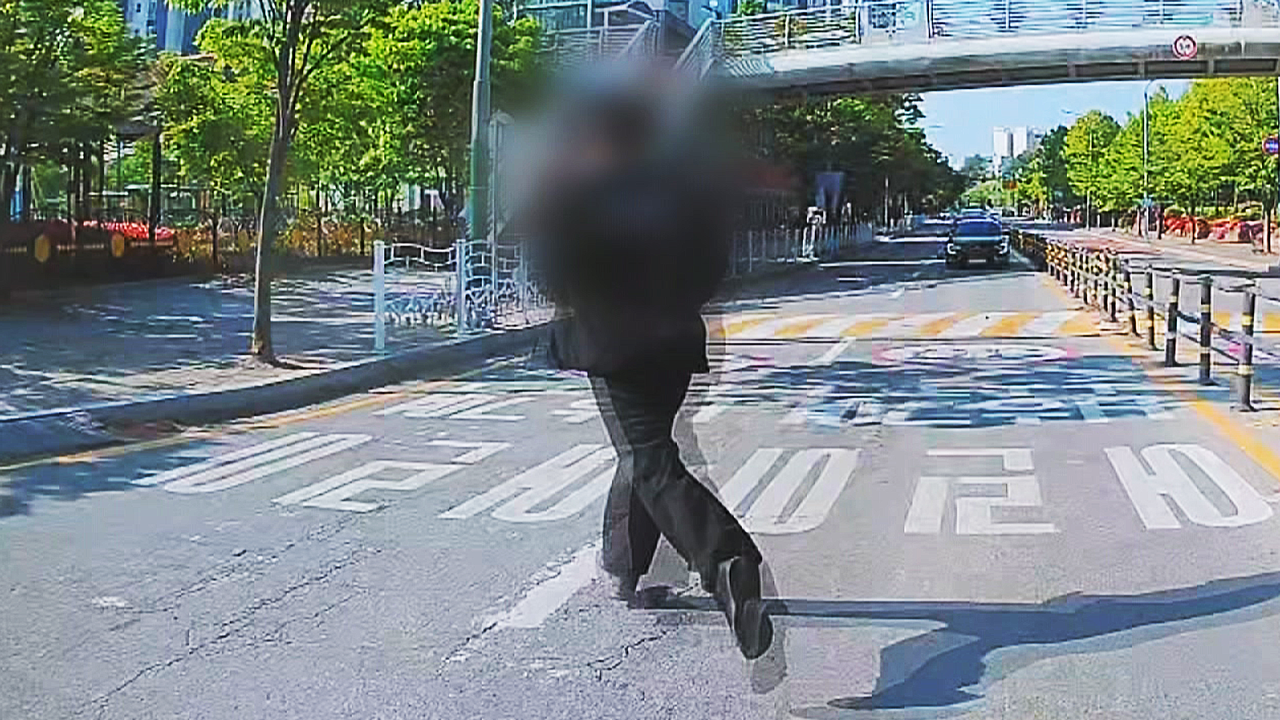 잠시 뒤 다시 인도로 뛰어 도망갑니다.