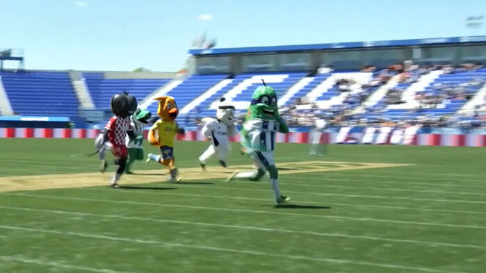 스페인 프로축구 마스코트들이 달리기 대결을 펼쳤습니다.