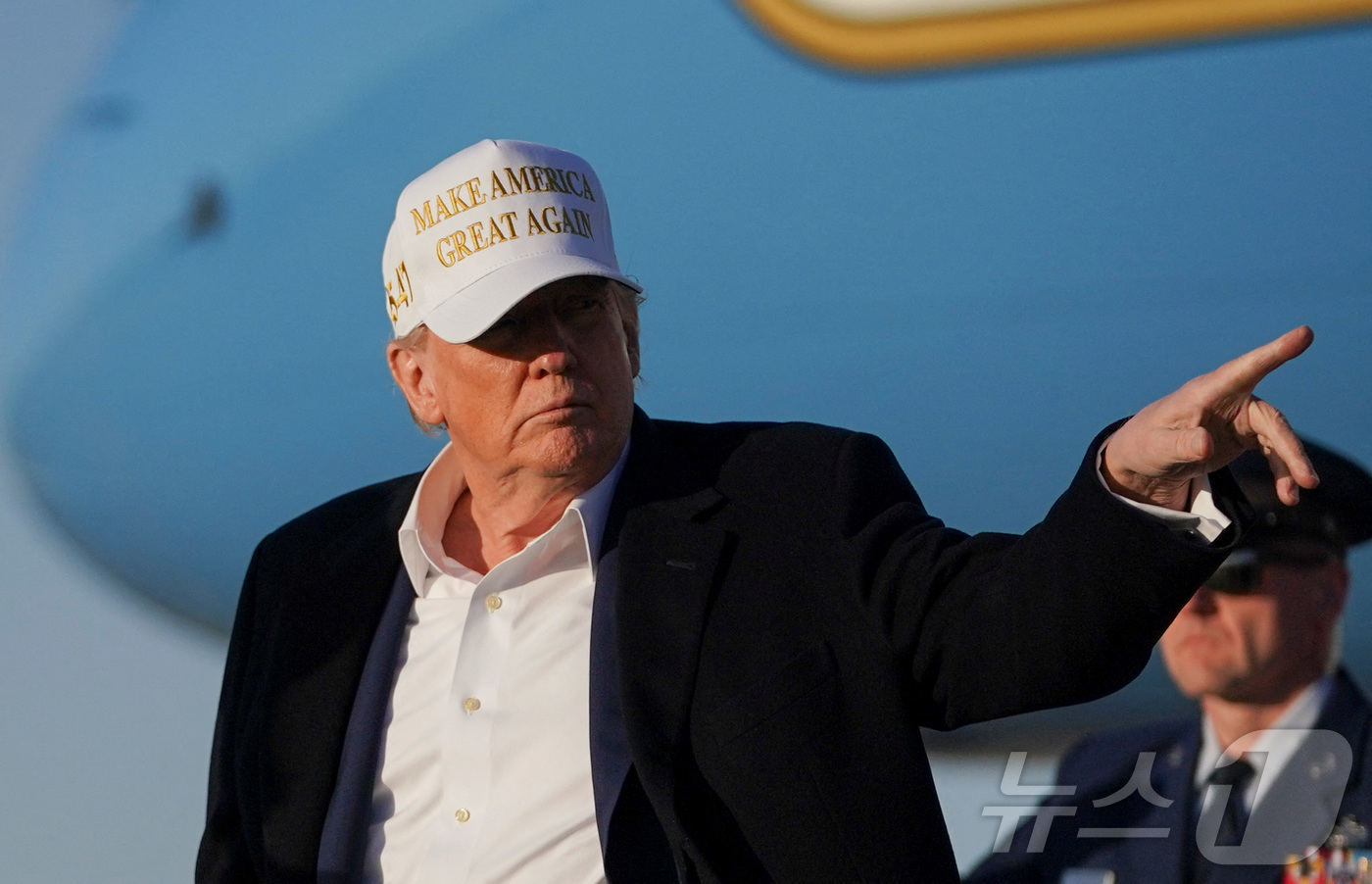 도널드 트럼프 미국 대통령이 27일(현지시간) 뉴저지주 베드민스터에서 워싱턴 인근 앤드루스 합동 기지에 도착해 취재진을 만나 “블라디미르 푸틴 러시아 대통령이 공격을 멈추고 종전 협정에 서명하길 바란다”고 말하고 있다. 2025.04.28 ⓒ 로이터=뉴스1 ⓒ News1 우동명 기자 |
