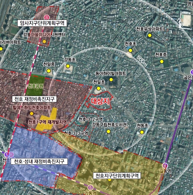 대상지 일대는 천일초등학교·고분다리 전통시장과 인접해 있는 양호한 입지에 위치한, 노후 저층 단독·다세대주택이 밀집해 있는 대표적 서민 주거지역이다.