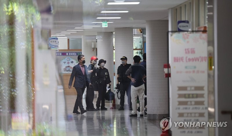 28일 학생 흉기 난동이 발생한 청주의 한 고등학교에서 경찰 등이 사고 상황을 파악하고 있다. |