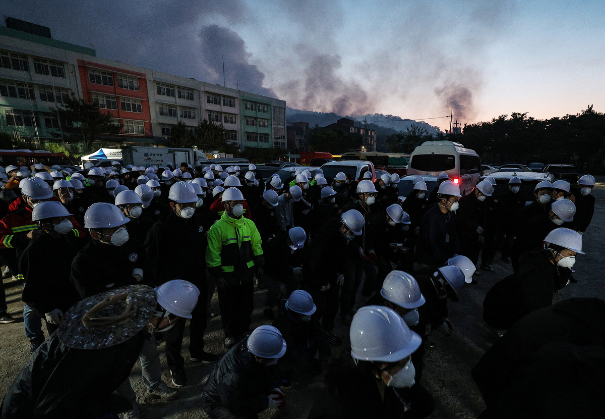 일몰 후에는 야간 대응 체제로 전환해 수리온 헬기 2대를 비롯해 공중진화대와 산불 재난 특수진화대 등 인력 1515명과 고성능 산불 진화 차량 15대 등 장비 398대를 밤샘 투입해 진화 및 방화선 구축 등 작업을 이어왔다.
