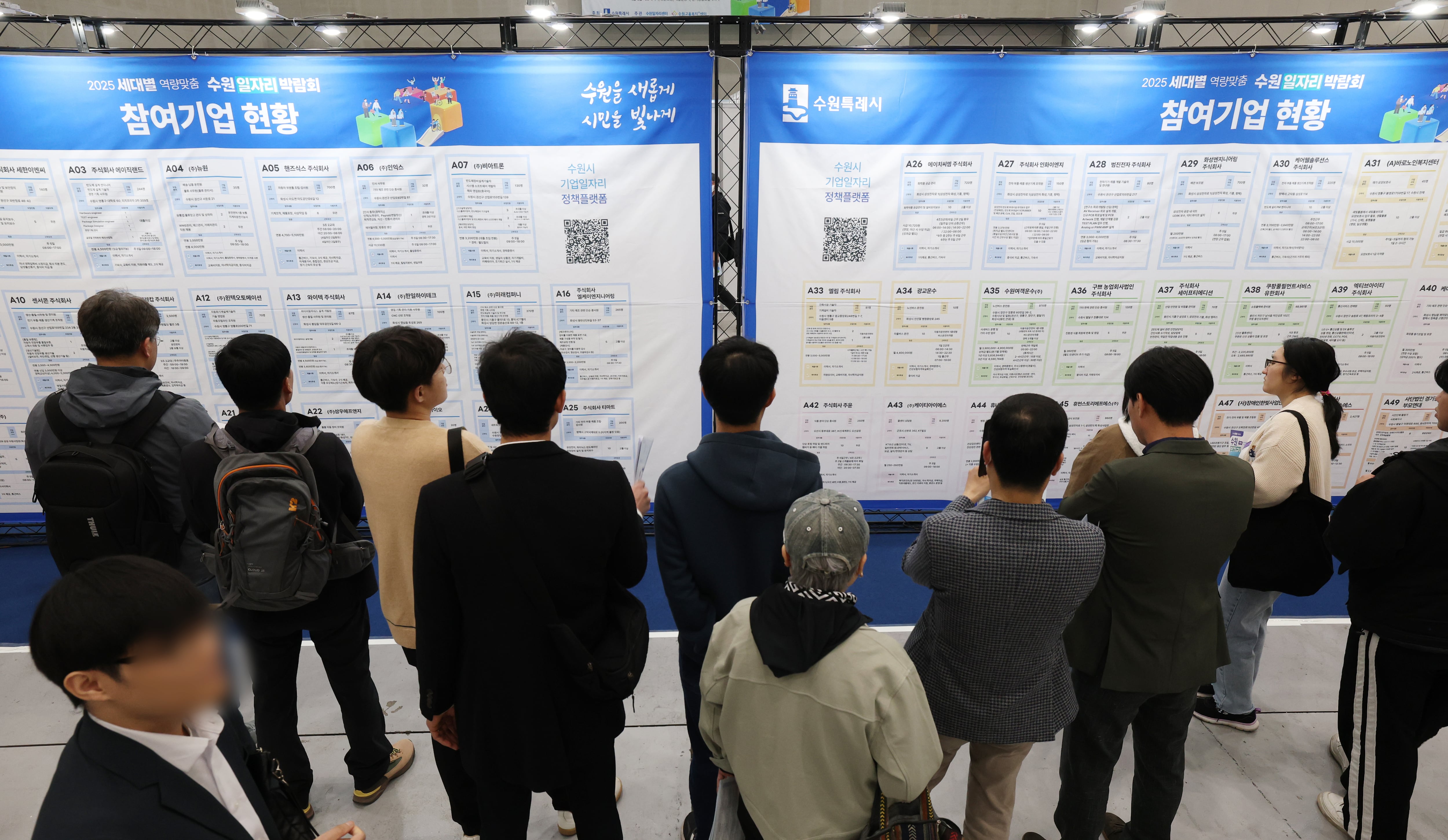일자리박람회'에서 구직자들이 참여기업 현황판을 살펴보고 있다. 기사와 관련 없음./뉴스1 |