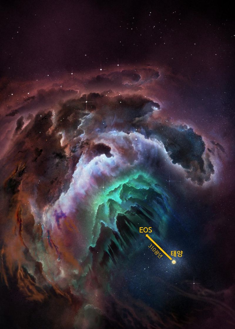 연구진은 2003년에 발사된 과학기술위성 1호의 주탑재채인 원자외선분광기(FIMS; Far-ultraviolet IMaging Spectrograph) 자료를 이용해 새로운 분자운을 발견하고 EOS라고 명명했다. 이는 원자외선 수소분자 방출선으로 발견된, 태양에서 가장 가까운 분자운이다. 해당 분자운은 지구로부터 약 310광년 떨어져 있으며, 태양을 둘러싸고 있는 뜨거운 국부거품(Local Bubble)의 경계에 위치한다.