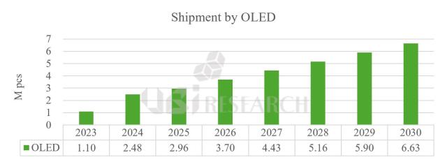 한창욱 유비리서치 부사장은 "소프트웨어 중심 자동차(SDV)는 고해상도, 저전력, AR 및 멀티 디스플레이와 같은 성능을 요구하며, 실시간 데이터 제공 및 사용자 경험 최적화를 요구한다"며 "이에 적합한 OLED 디스플레이 채용이 계속 확대될 것이며, 올해는 차량용 OLED 패널 출하량이 약 300만대에 달할 것"이라고 말했다.