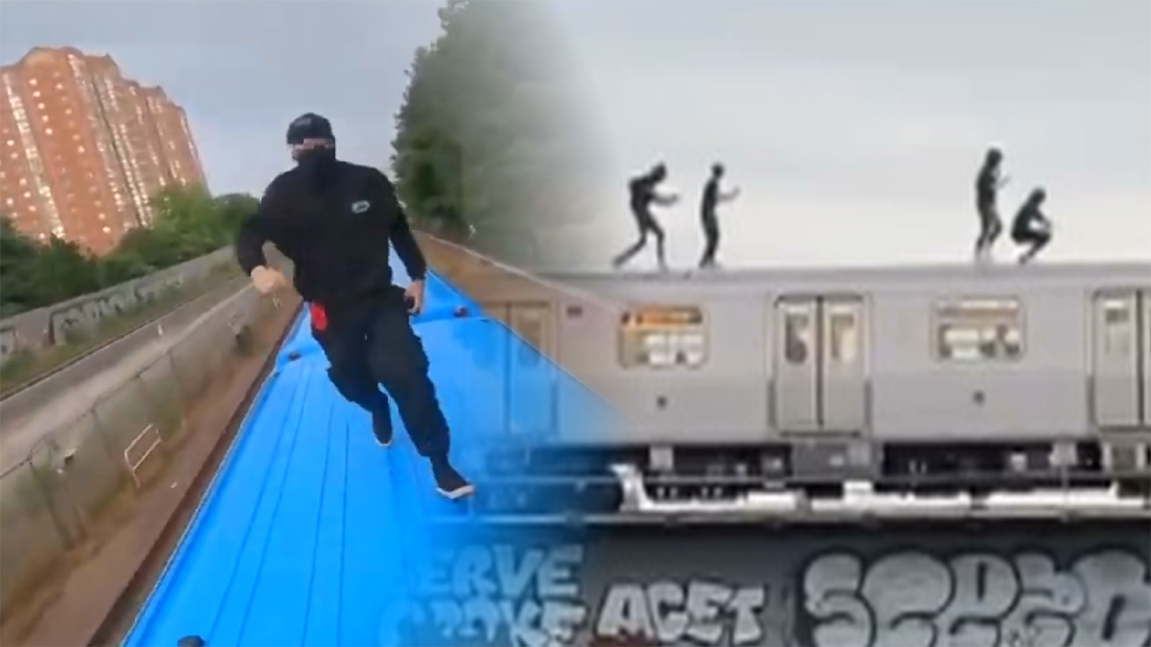달리는 열차 위에 올라타는 이른바 '열차 서핑'.