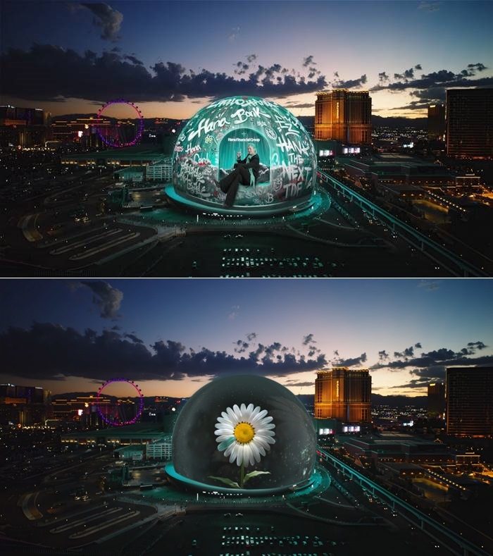 지난 29일 지드래곤의 ‘원 스피릿, 원 팀(One Spirit, One Team)’ 프로젝트 미디어아트 영상이 라스베이거스 스피어돔의 엑소스피어(Exosphere, 스피어의 외관)에 송출됐다.